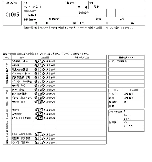 Статус выставлен на аукцион Лот 1095 Аукцион ARAI Kenki Дата аукциона 17.03.2026