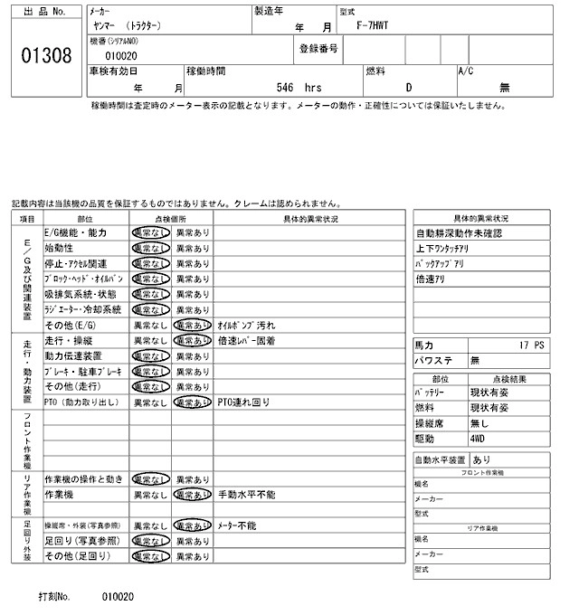 Статус выставлен на аукцион Лот 1308 Аукцион ARAI Kenki Дата аукциона 17.03.2026