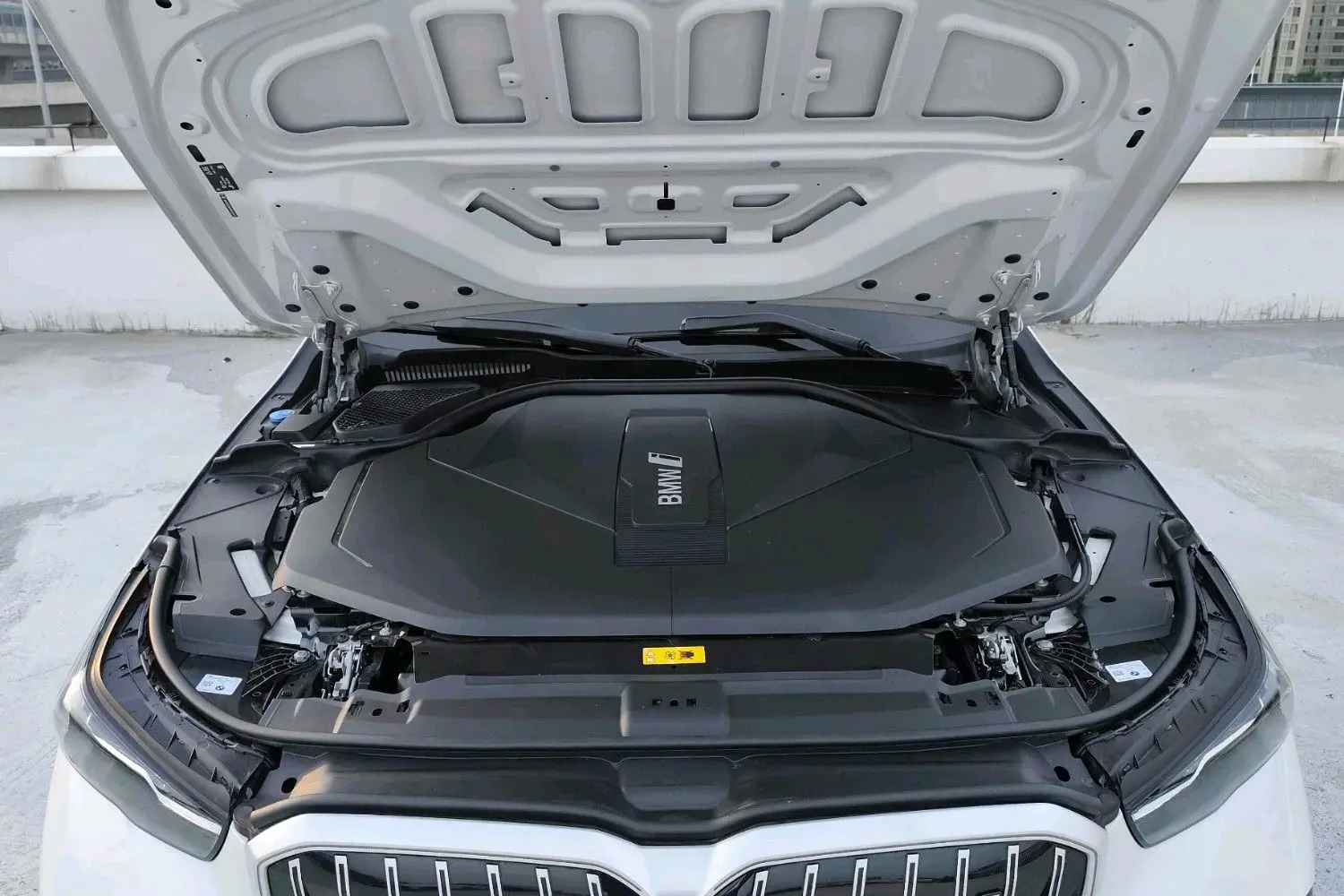 Интеллектуальная взаимосвязанная кабина (включая полноцветный проекционный дисплей), подвесной гигантский экран BMW, возможности сети 5G, усовершенствованная четырехзонная автоматическая система кондиционирования воздуха.