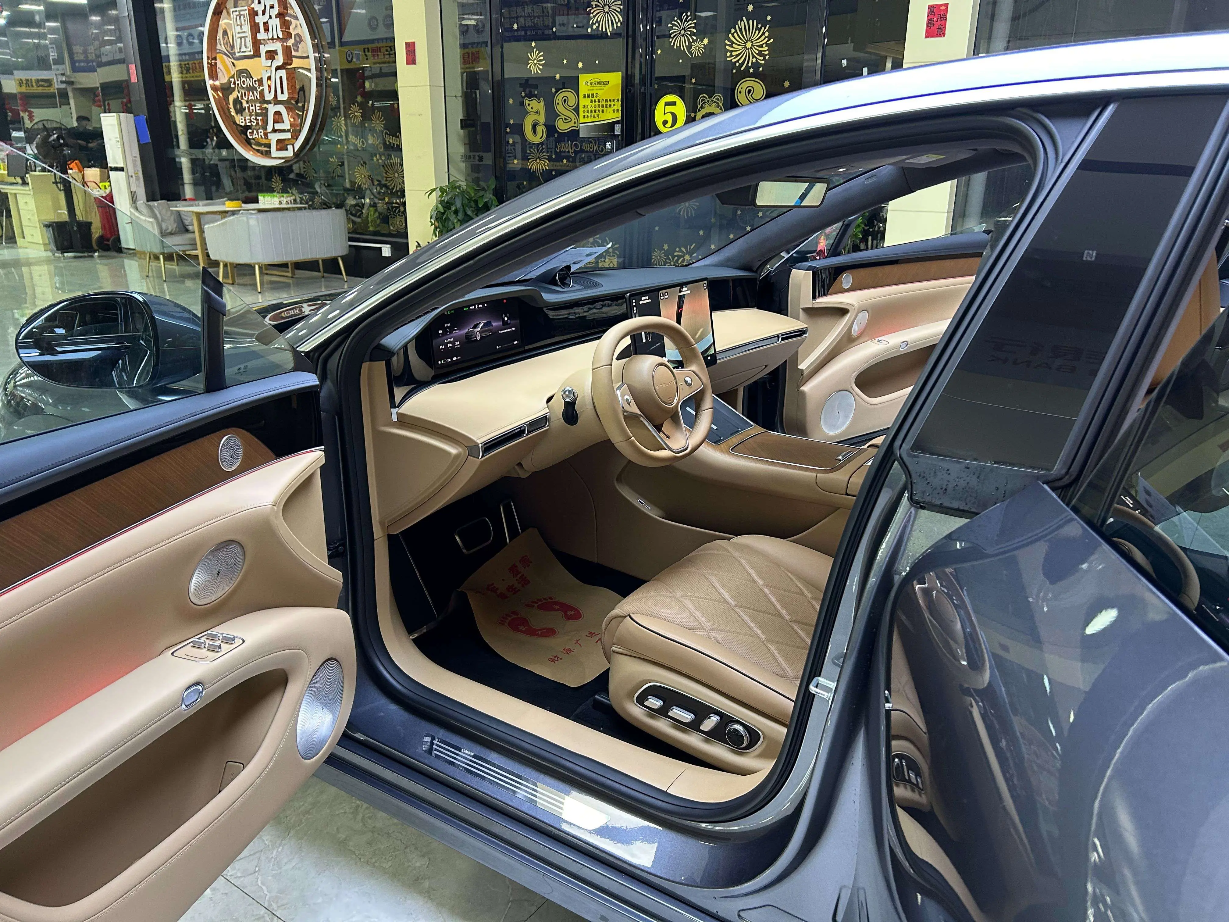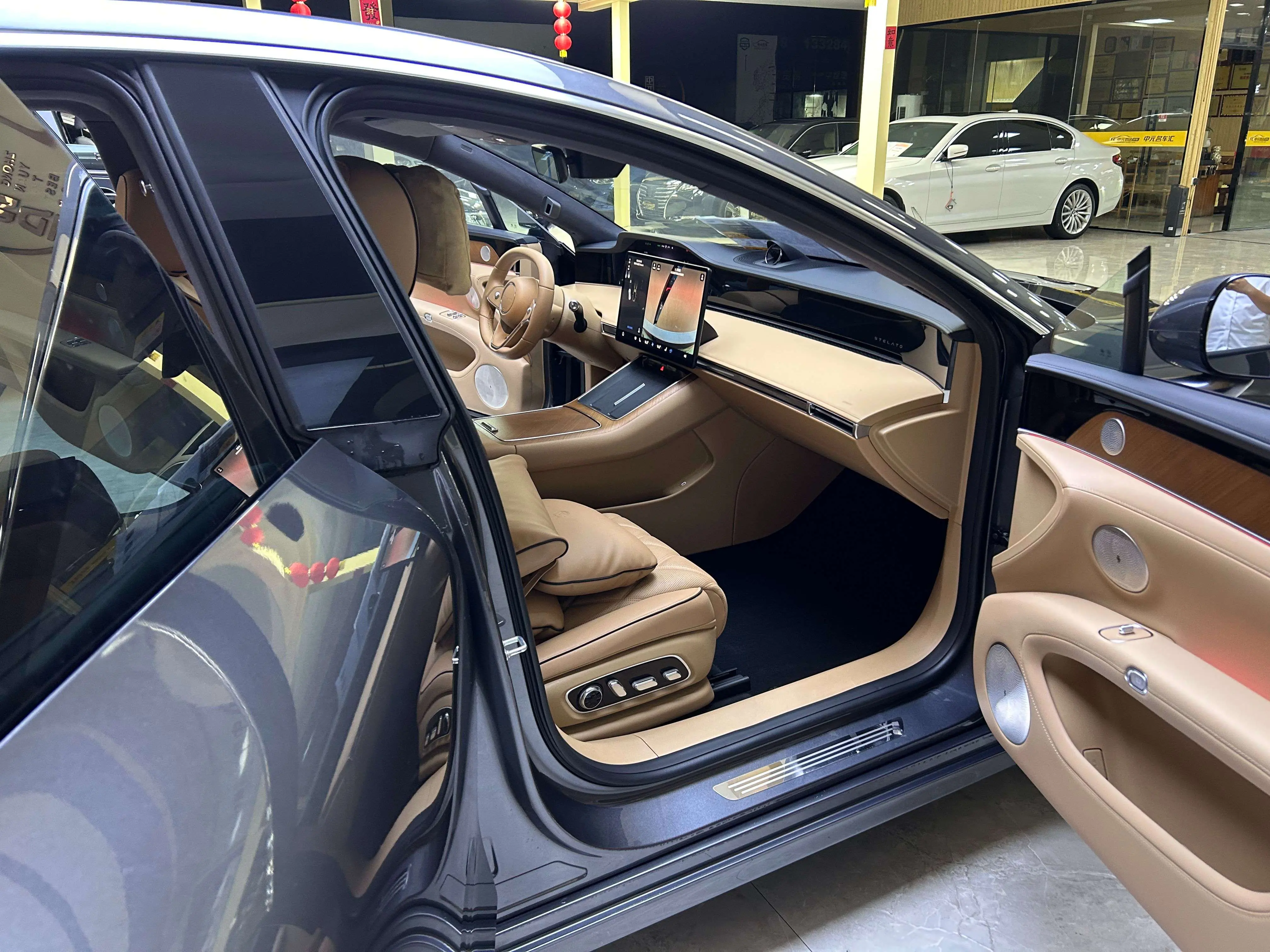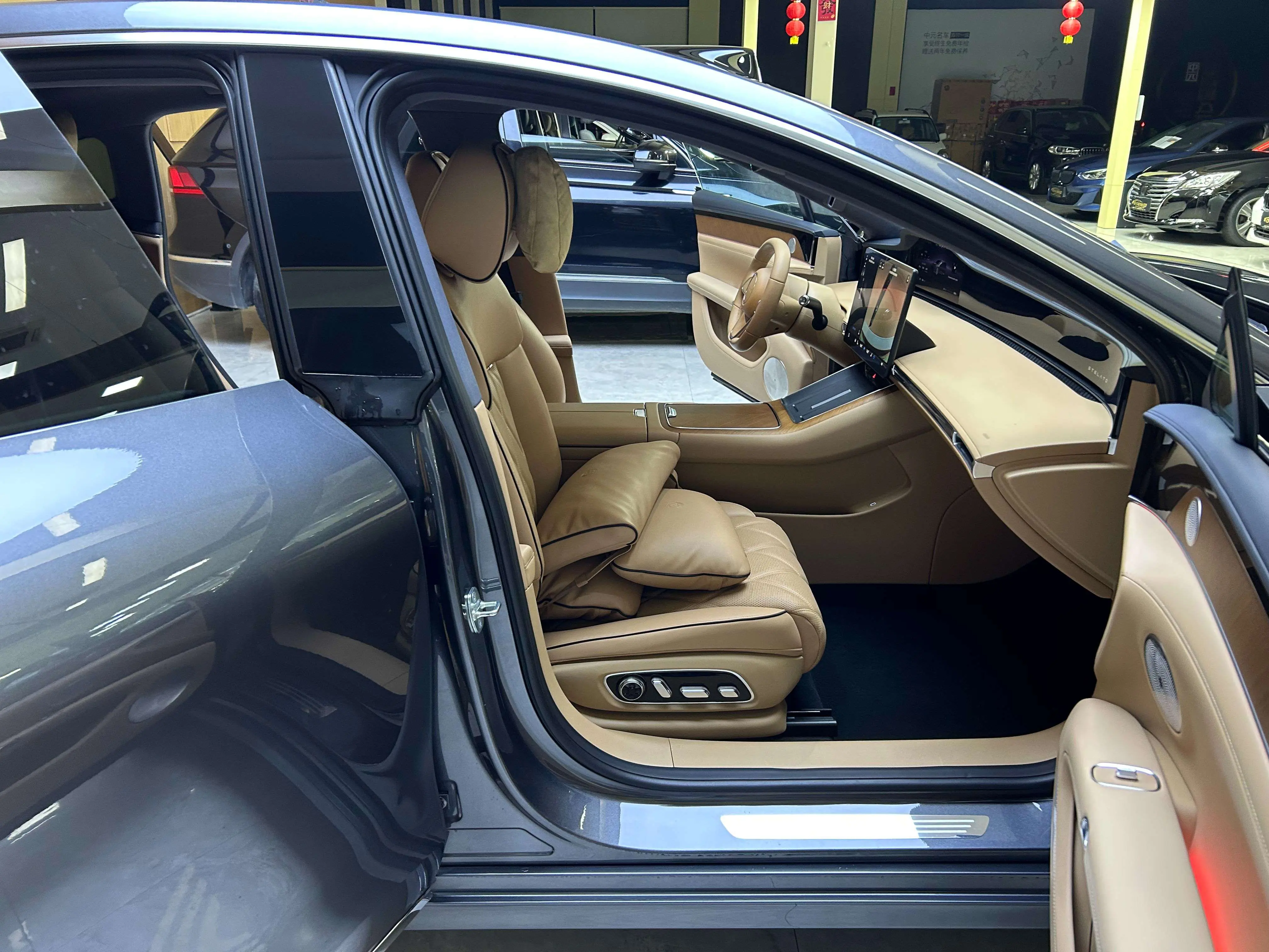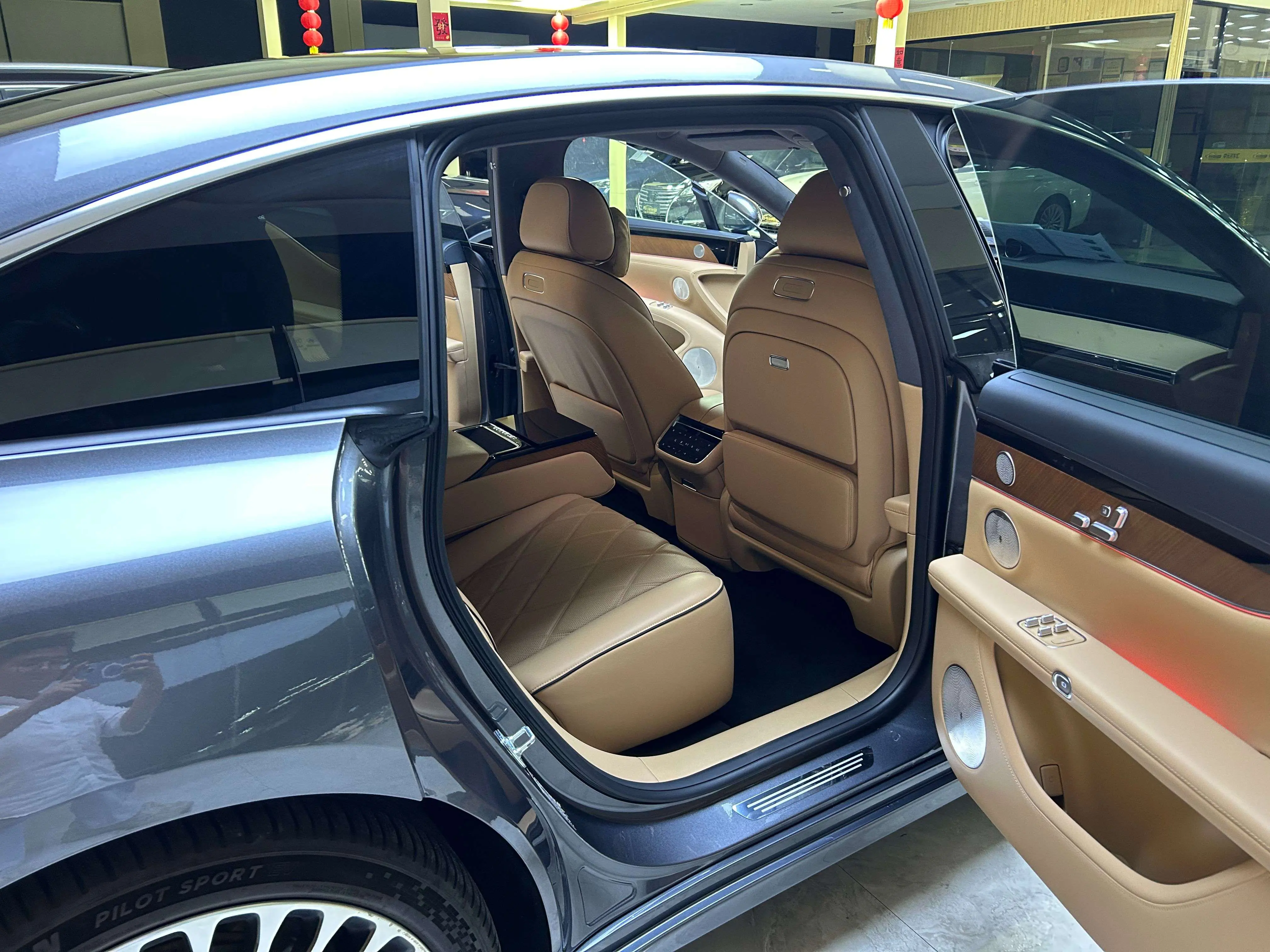 Отделка из настоящего дерева + поддержка бедер водителя и пассажира + электропривод задних сидений на 43 градуса + экран в подлокотнике сзади + интеллектуальный подогрев и охлаждение + трехмерная система солнцезащитных шторок + вентиляция/подогрев/массаж