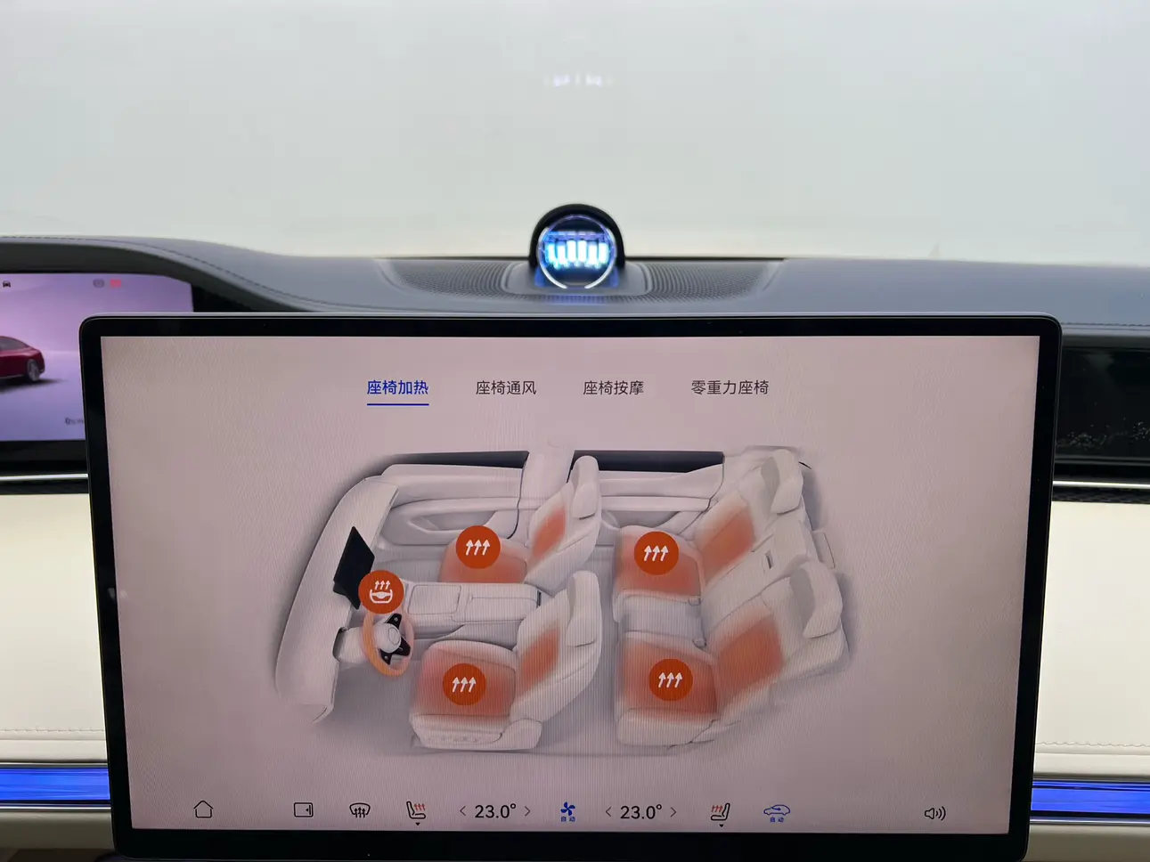 Отделка из настоящего дерева + поддержка бедер водителя и пассажира + электропривод задних сидений на 43 градуса + экран в подлокотнике сзади + интеллектуальный подогрев и охлаждение + трехмерная система солнцезащитных шторок + вентиляция/подогрев/массаж