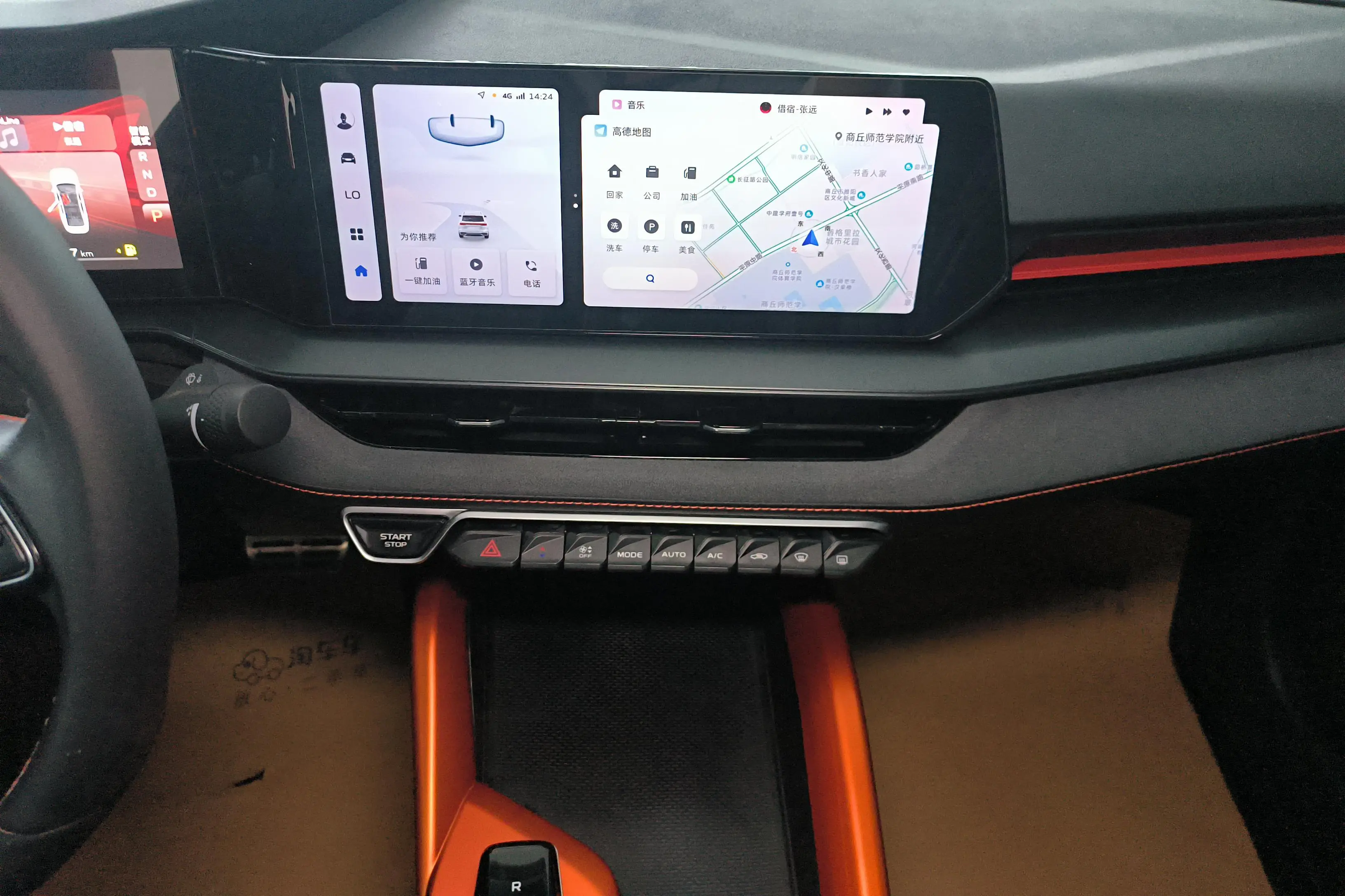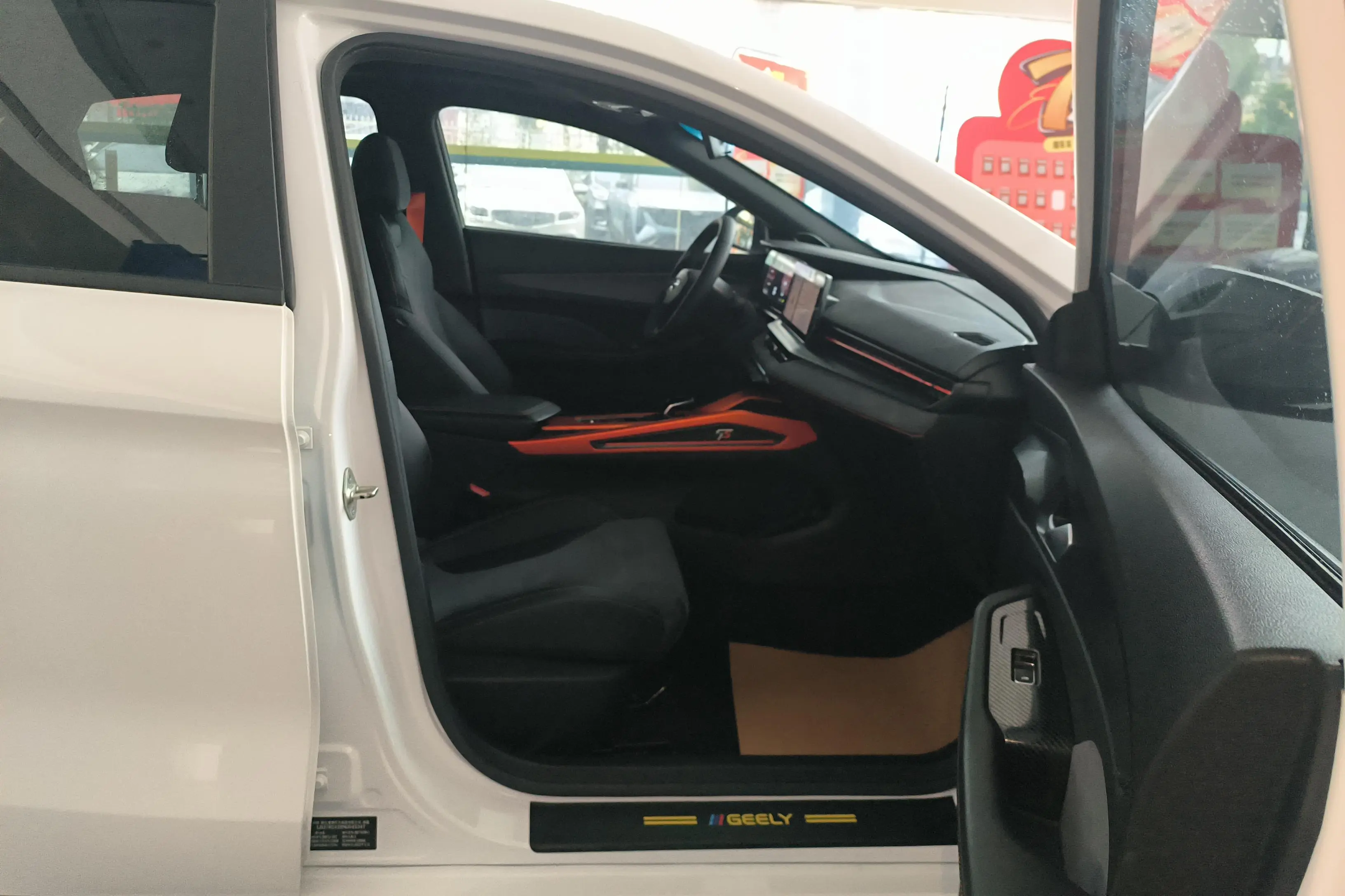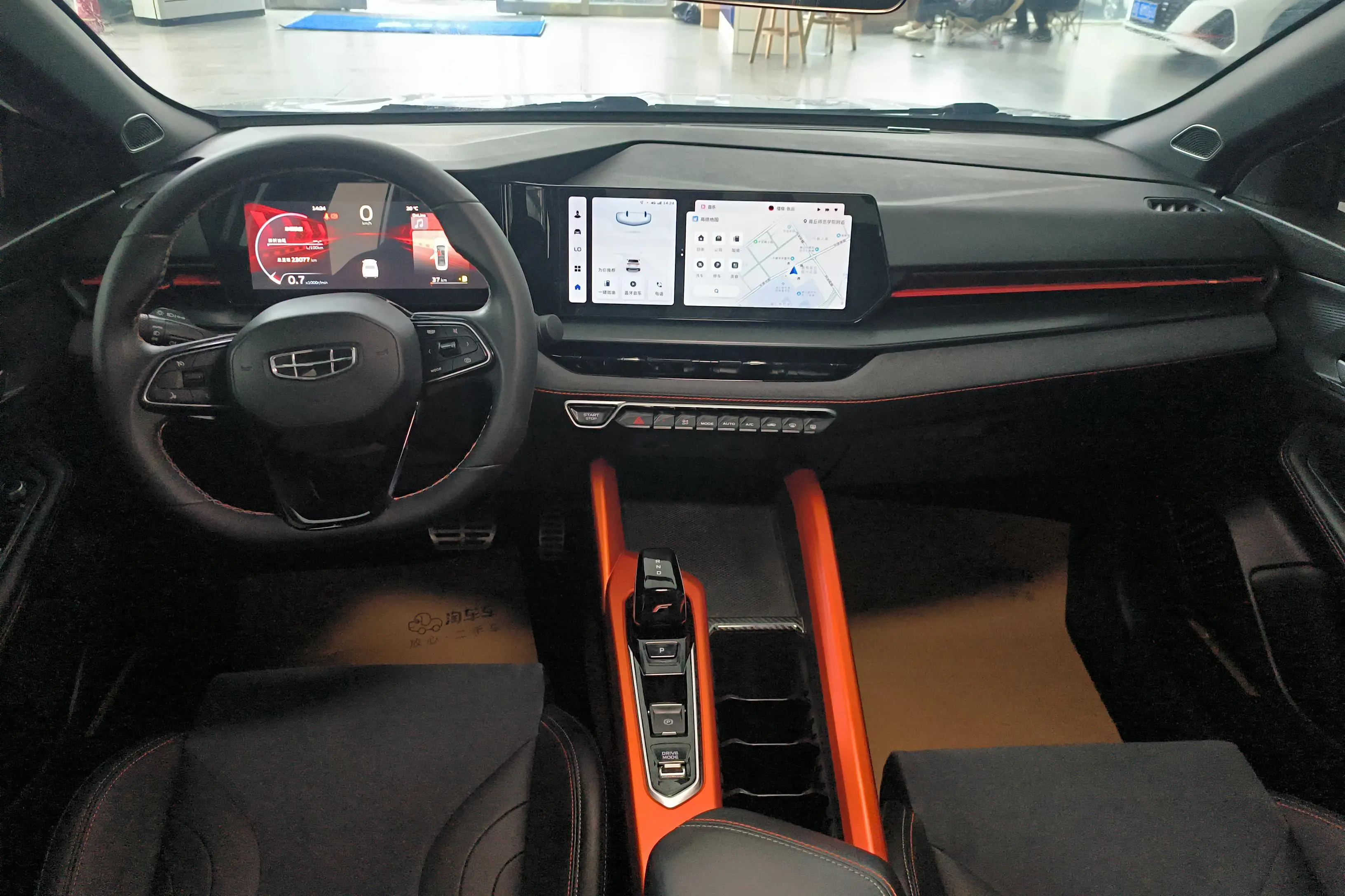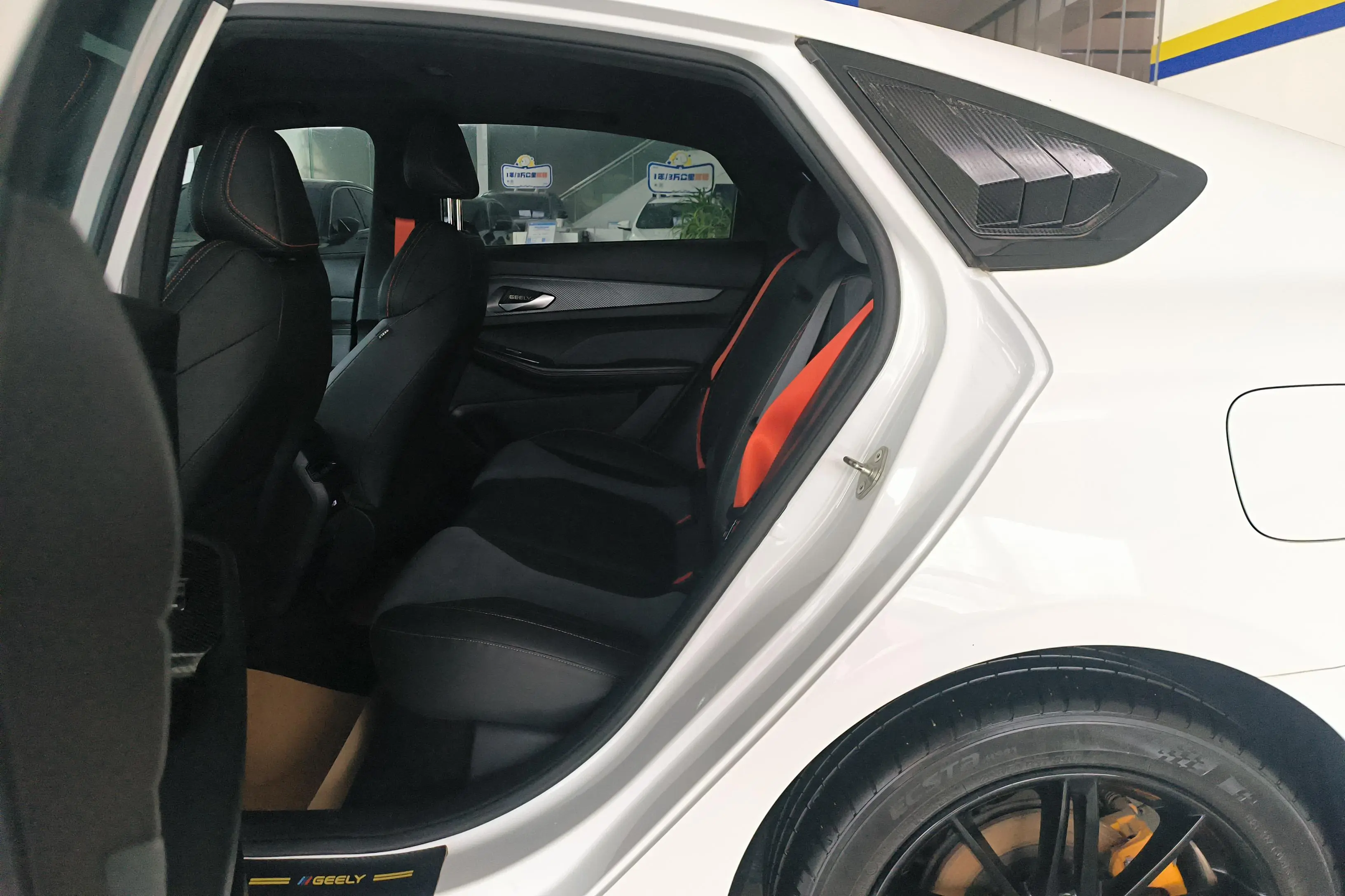 Спортивный логотип F + персонализированный логотип «95», молниеносно-оранжевый комплект, черная краска, черные ветрозащитные колеса, производительные суппорты, двойная отделка салона, напоминающая замшу (штормовой серый/ярко-зеленый), оранжевые спортивные