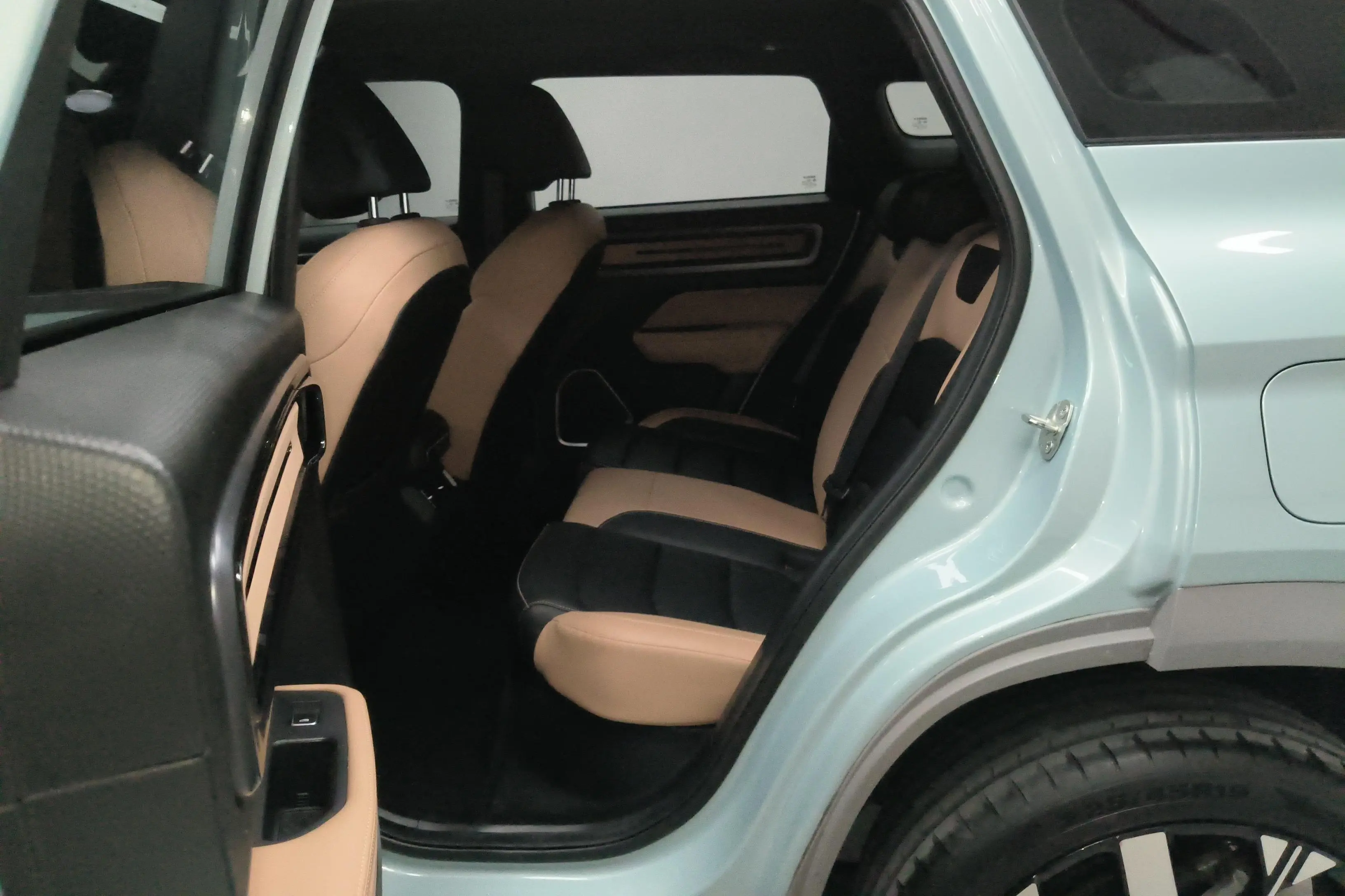 19-дюймовые колеса с пятиконечной звездой, сенсорные дверные ручки, двухцветный кузов.