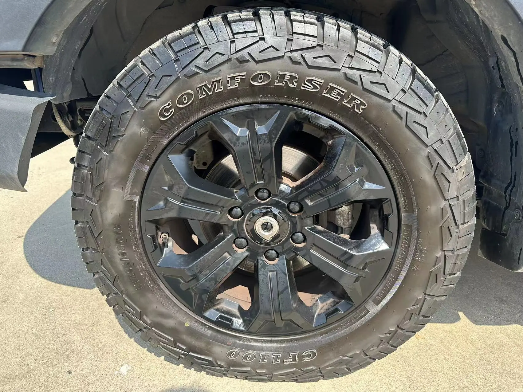 Шины BFGoodrich AT, азотные амортизаторы, красные тормозные суппорты, красные задние пружины.