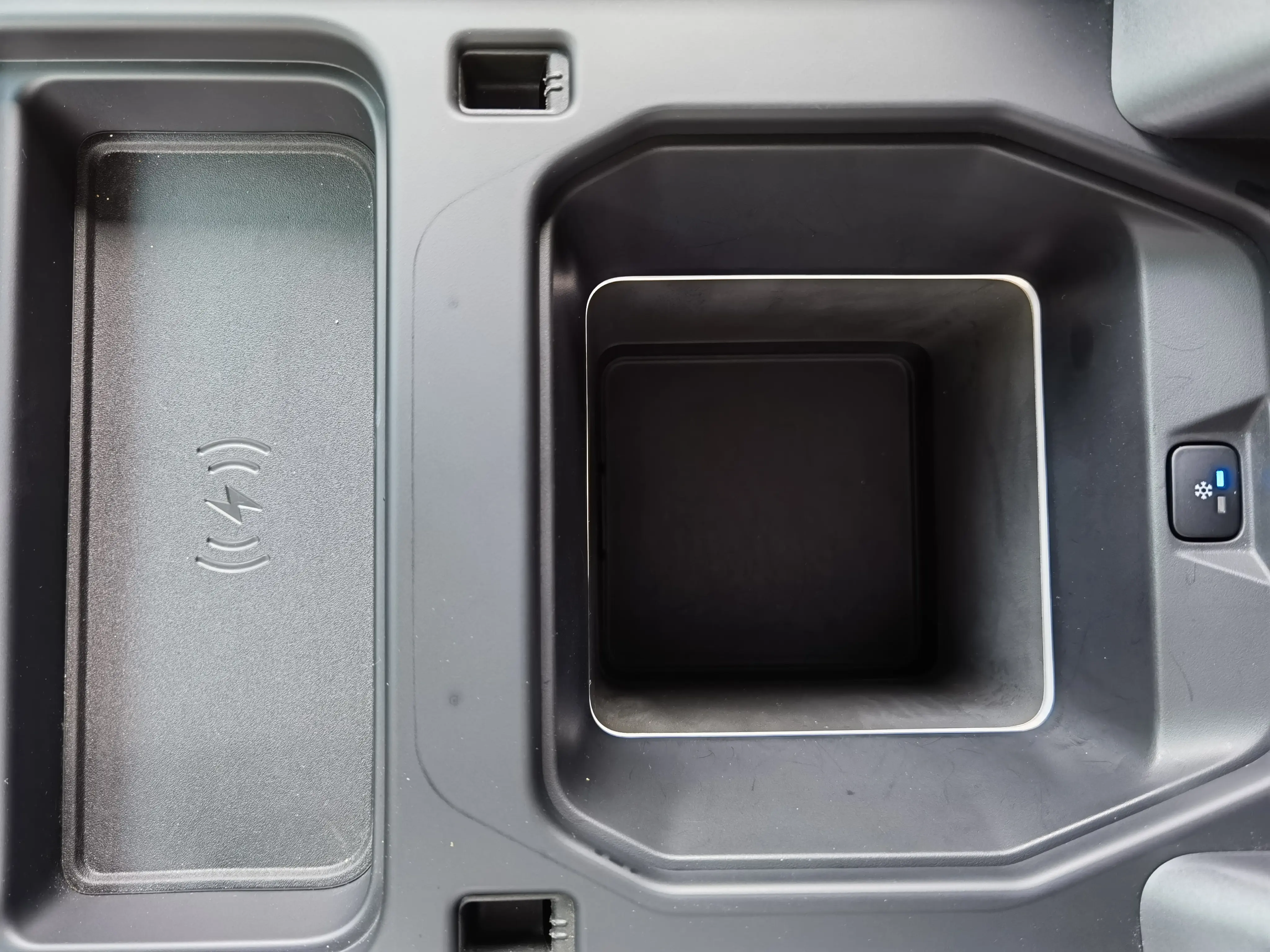 Встроенный холодильник в центральном проходе, беспроводная зарядка для мобильных телефонов.
