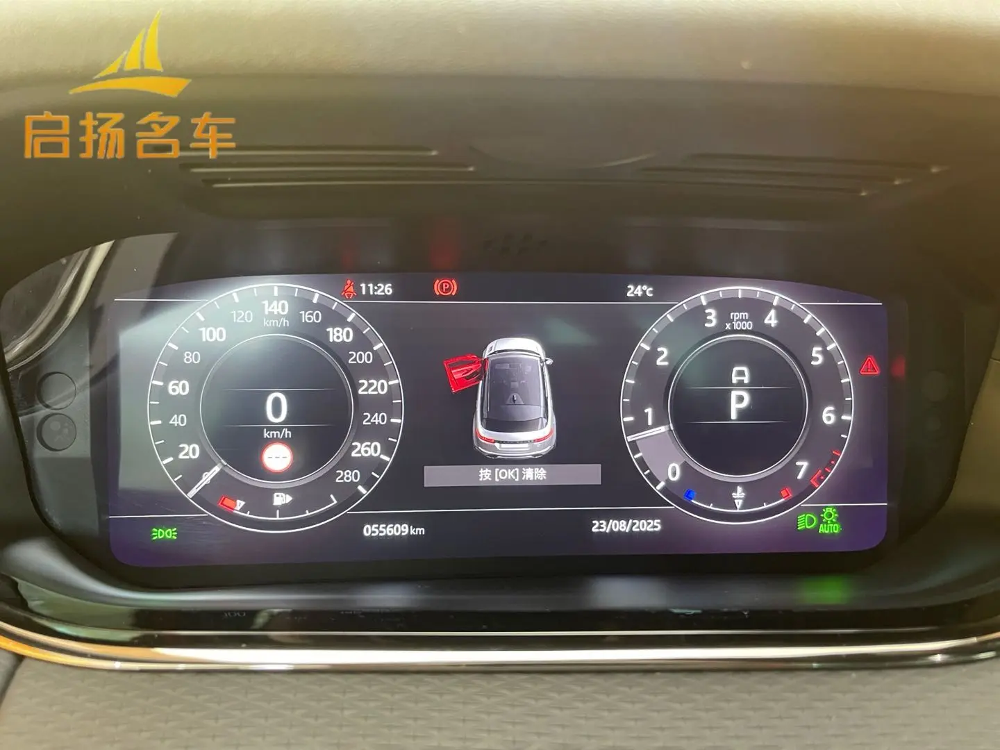 Металлическая обшивка дверей с подсветкой, надписью Range Rover и регулируемым освещением салона в автомобиле.