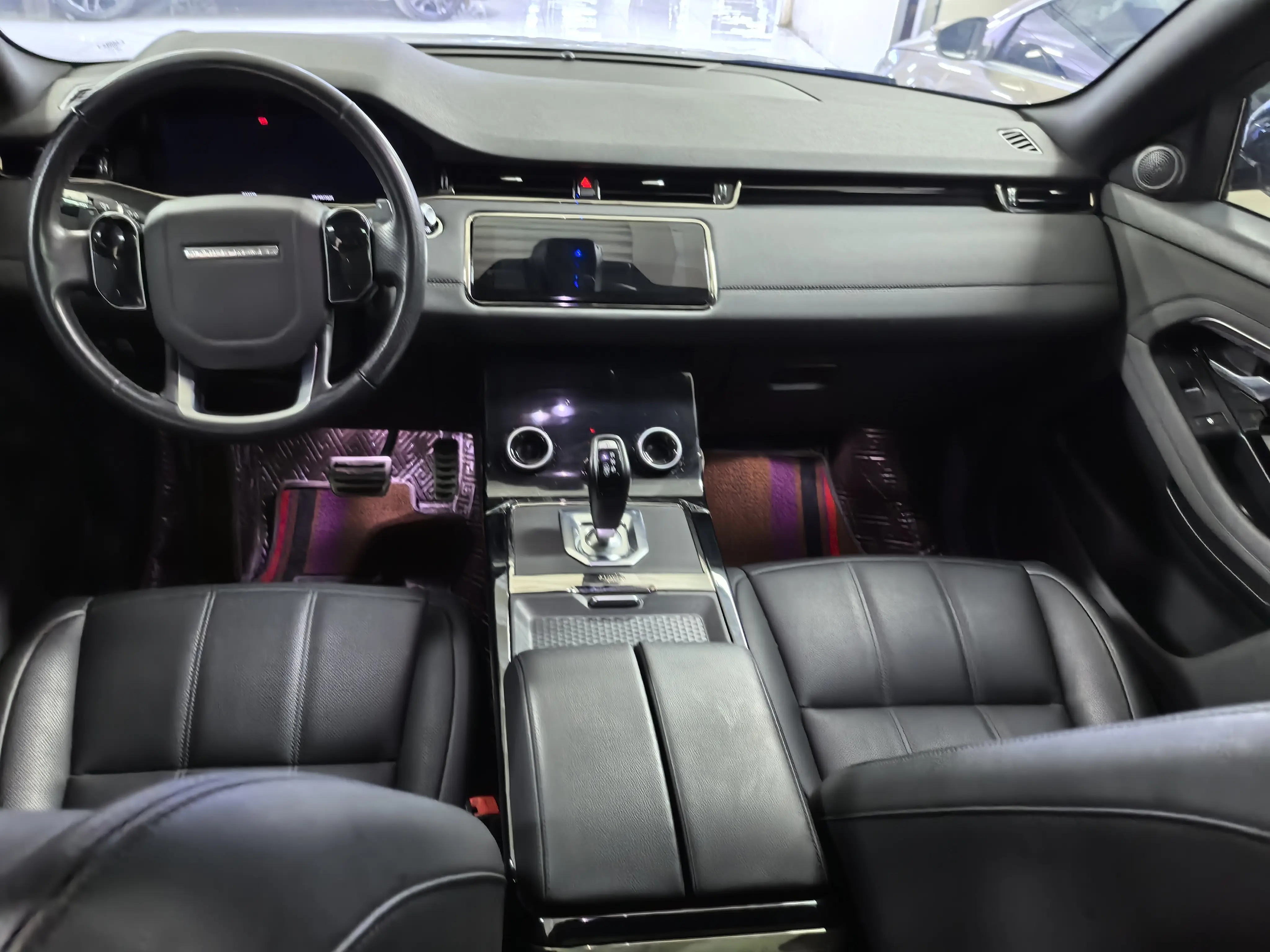 Металлическая обшивка дверей с подсветкой и надписью Range Rover, регулируемое окружающее освещение в автомобиле, электрическая регулировка передних сидений в 14 направлениях, включая электрическую поясничную поддержку в 4 направлениях, с подогревом перед
