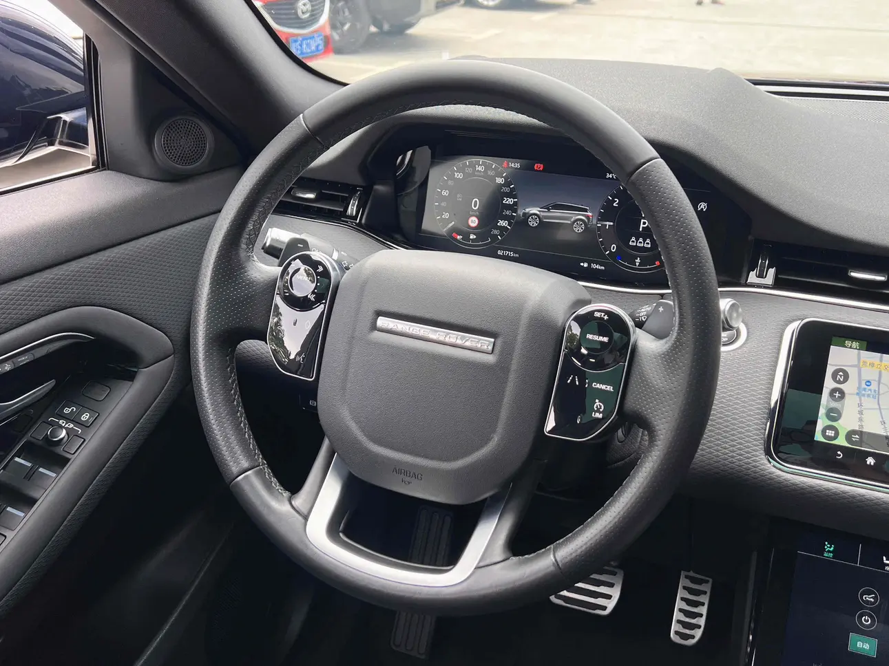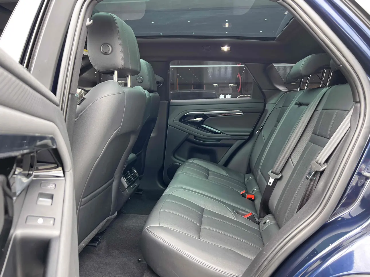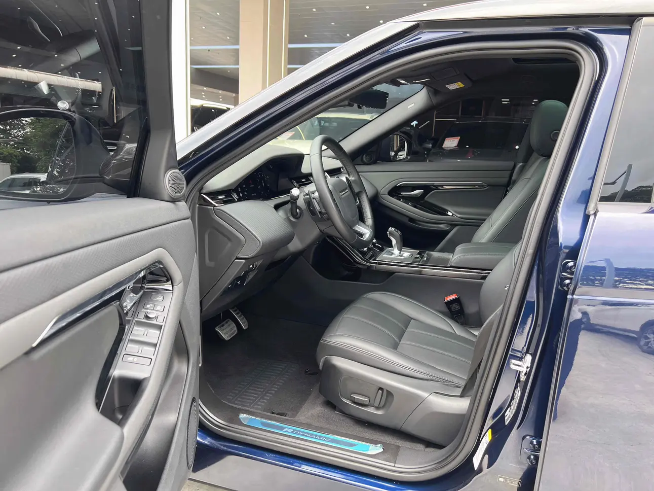 Металлическая обшивка дверей с подсветкой, надписью Range Rover и регулируемым освещением салона в автомобиле.
