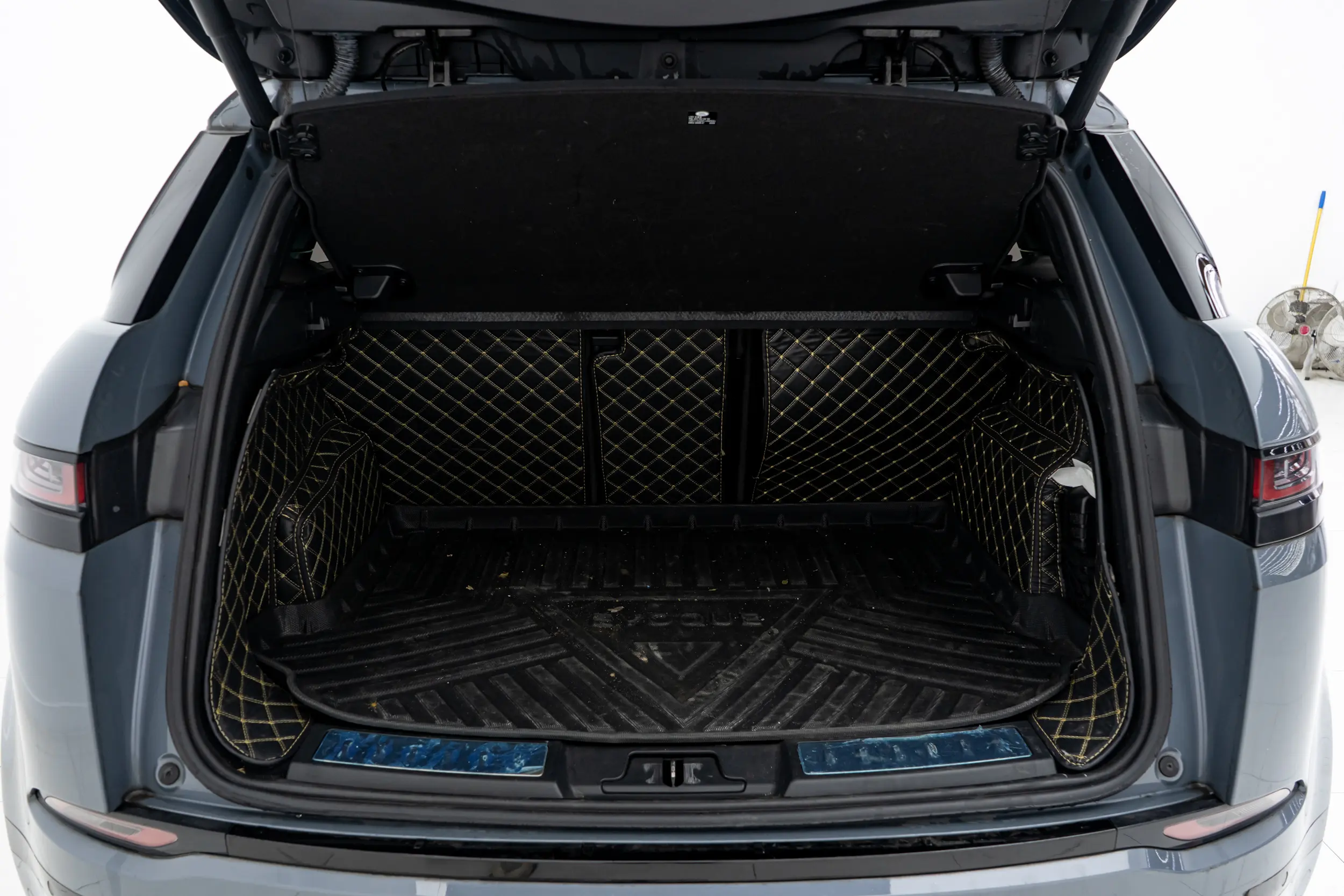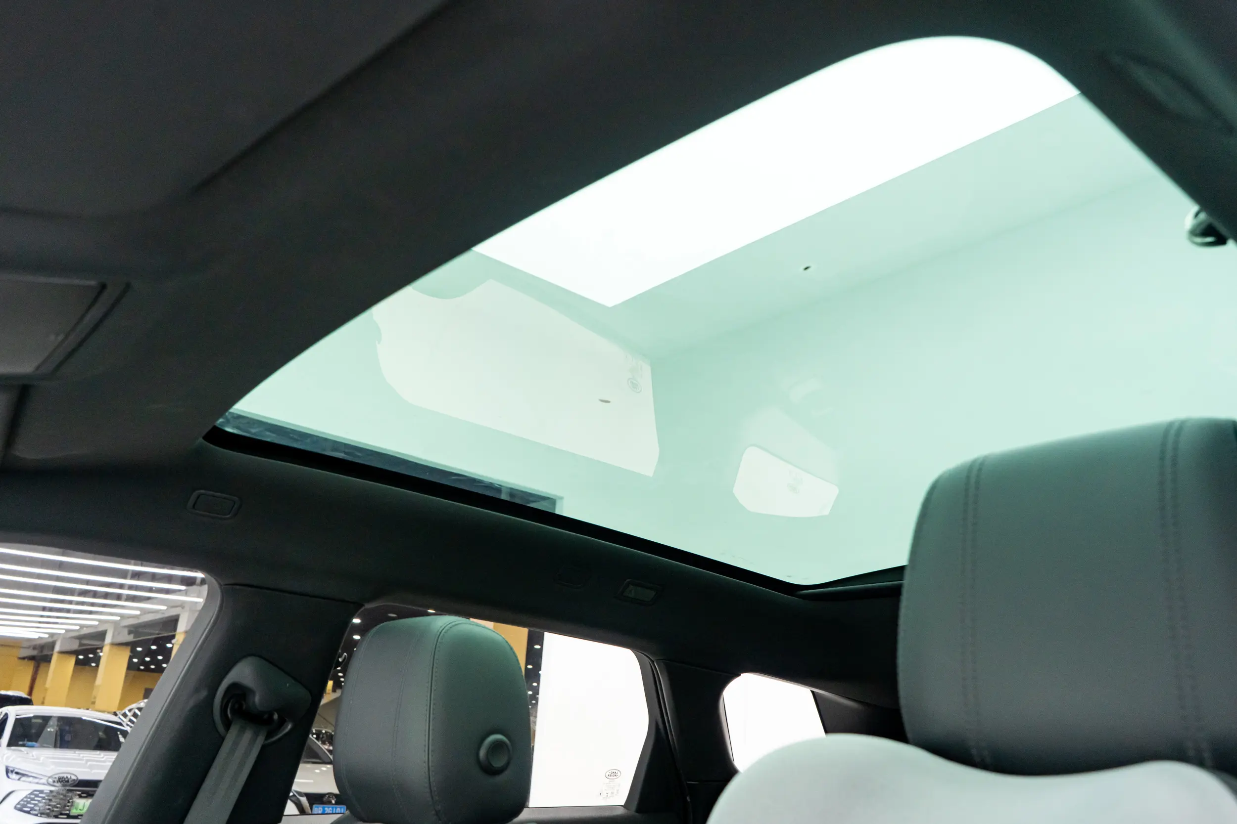 Металлическая обшивка дверей с подсветкой, надписью Range Rover и регулируемым освещением салона в автомобиле.