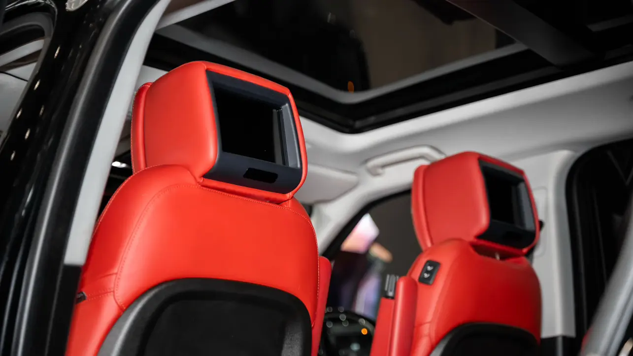 Сиденья первого ряда, регулируемые в 22 направлениях, с функциями массажа и памяти, подголовниками с оплеткой в стиле «летающее крыло», напольными ковриками премиум-класса и обивкой потолка из замши премиум-класса с отделкой из кожи.