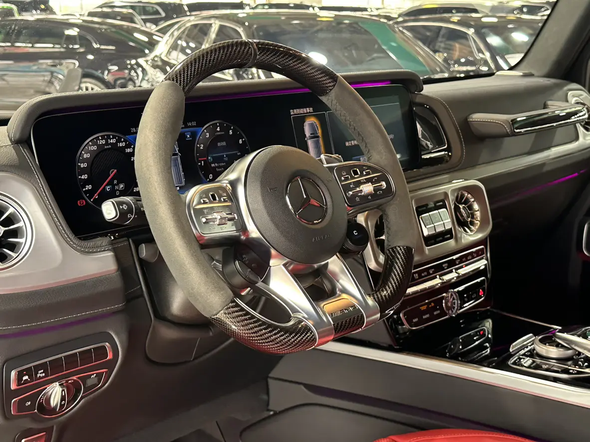 G manufaktur Бампер, передние и задние колесные арки окрашены в черный матовый цвет Пакет AMG Night Пакет AMG Night II G manufaktur Запасные диски, окрашенные в черный матовый цвет Кованые диски AMG с крестообразными спицами диаметром 55,9 см (22 дюйма) Ч