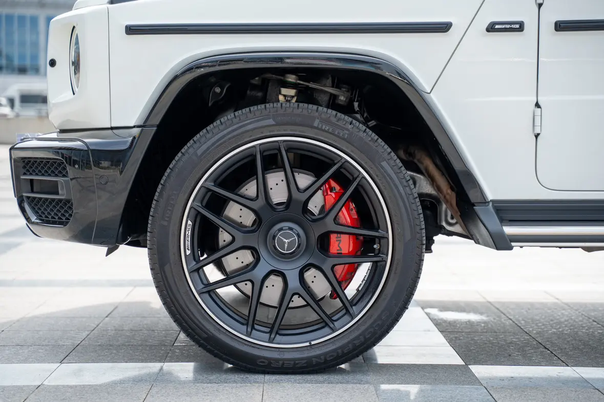 G manufaktur Бампер, передние и задние колесные арки окрашены в черный матовый цвет Пакет AMG Night Пакет AMG Night II G manufaktur Запасные диски, окрашенные в черный матовый цвет Кованые диски AMG с крестообразными спицами диаметром 55,9 см (22 дюйма) Ч