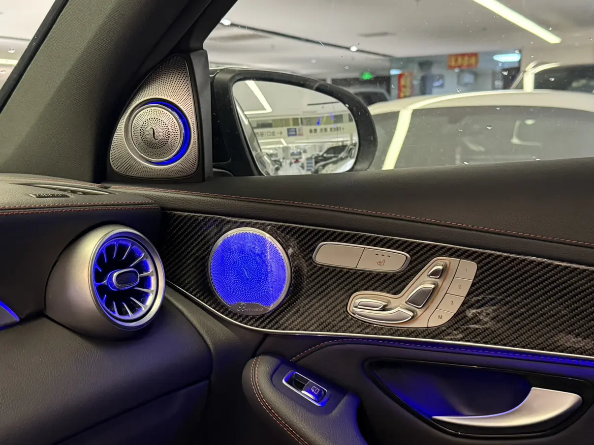 Декоративные элементы из карбона AMG/легкого алюминия с вертикальными рисунками, рулевое колесо AMG Performance из кожи NAPPA, кнопки рулевого колеса AMG