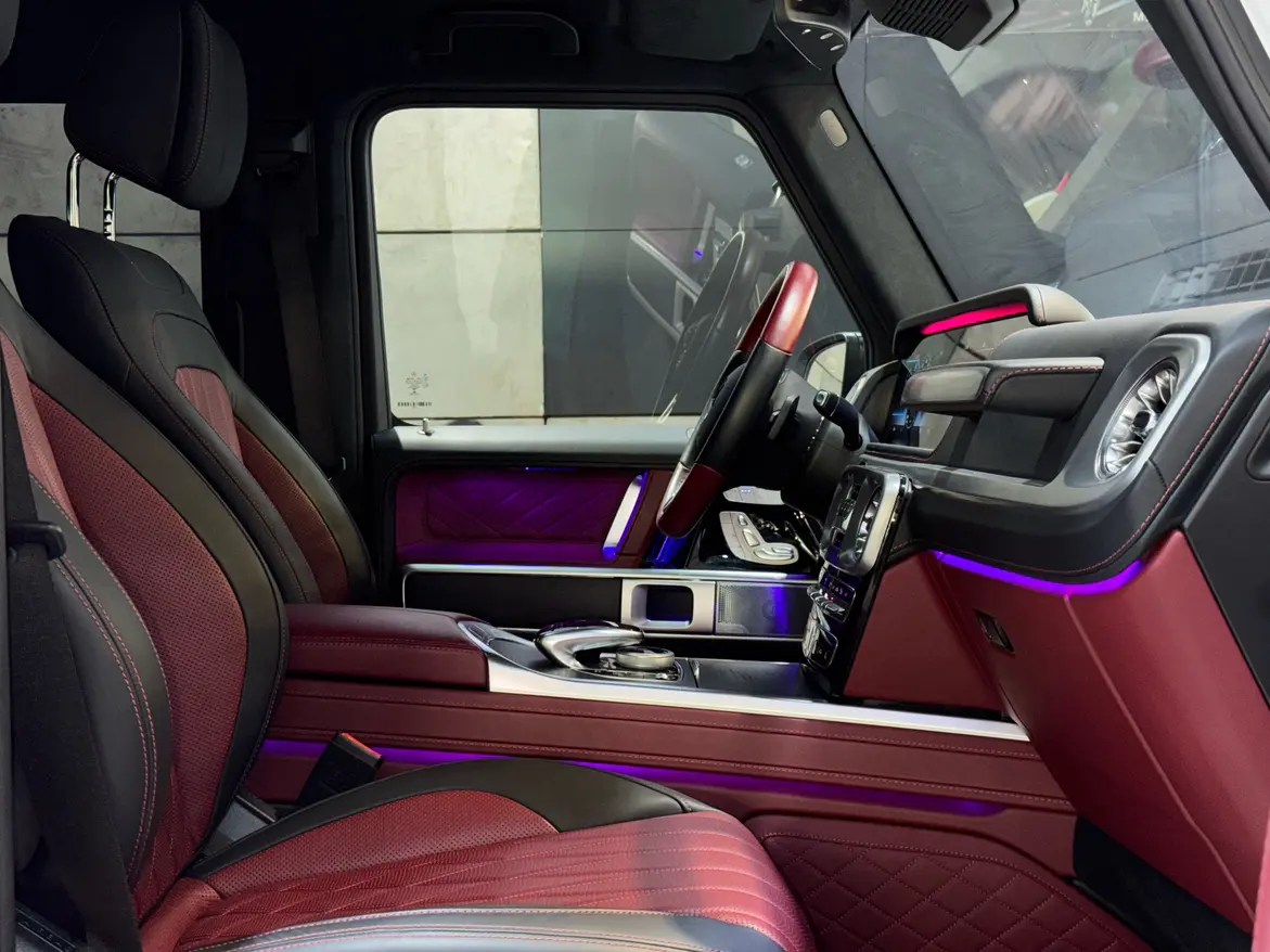 Бамперы G manufaktur, а также передние и задние колесные арки окрашены в черный цвет.Крыша окрашена в черный цвет и имеет компонент ночного цвета.Компонент ночного цвета II.