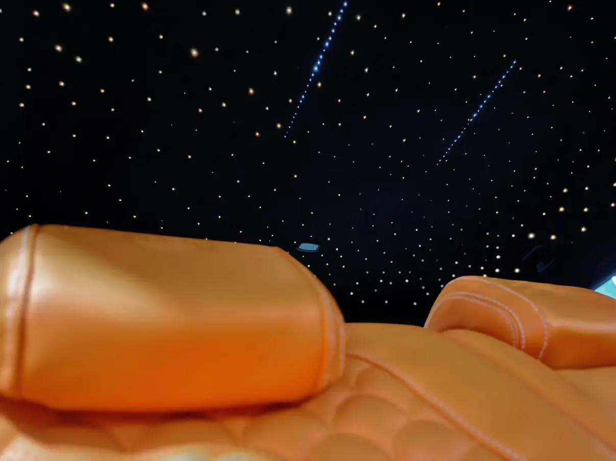 Пакет отделки салона Premium Edition включает в себя ряд специальных элементов, таких как обшивка потолка из микрофибры DINAMICA, кожаная отделка приборной панели, кожаные центральные панели дверей, серебристые воздухозаборники и сиденья из кожи AMG Premi