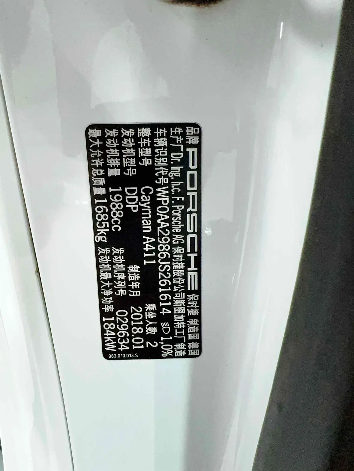 Porsche 718 2018 Cayman 2.0T