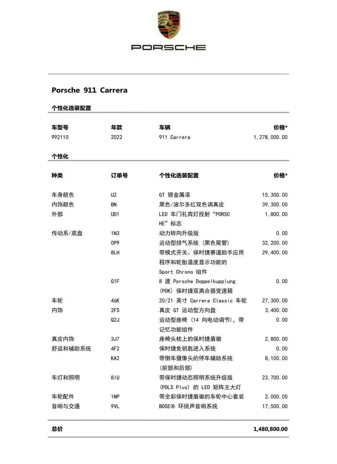Porsche 911 2022 Carrera 3.0T