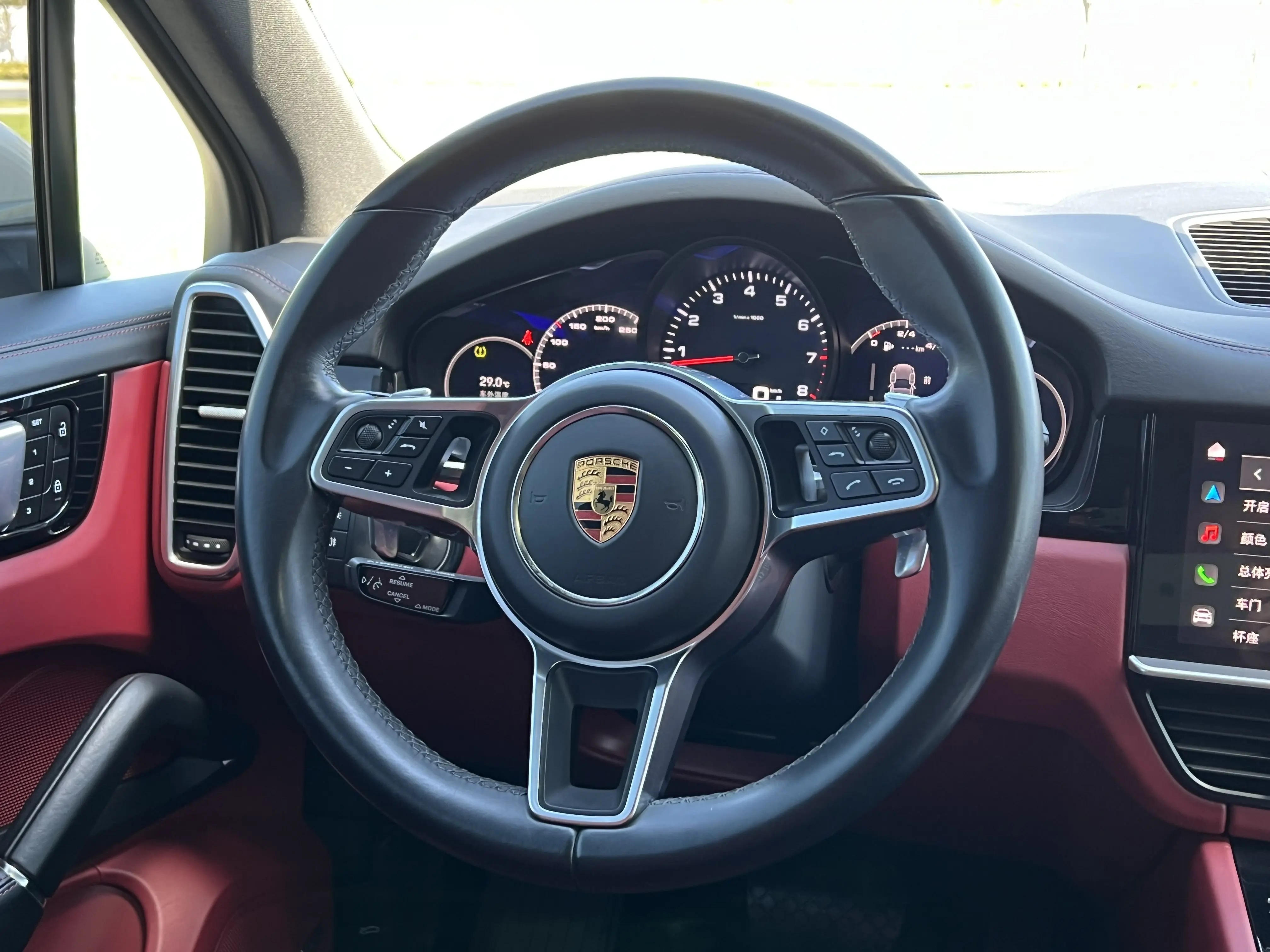 Тисненый герб Porsche на подголовнике сиденья (передние сиденья), вентиляция передних сидений с функцией массажа, функция удобного входа, система объемного звучания BOSE, функция автоматического закрытия дверей, система помощи при парковке задним ходом с