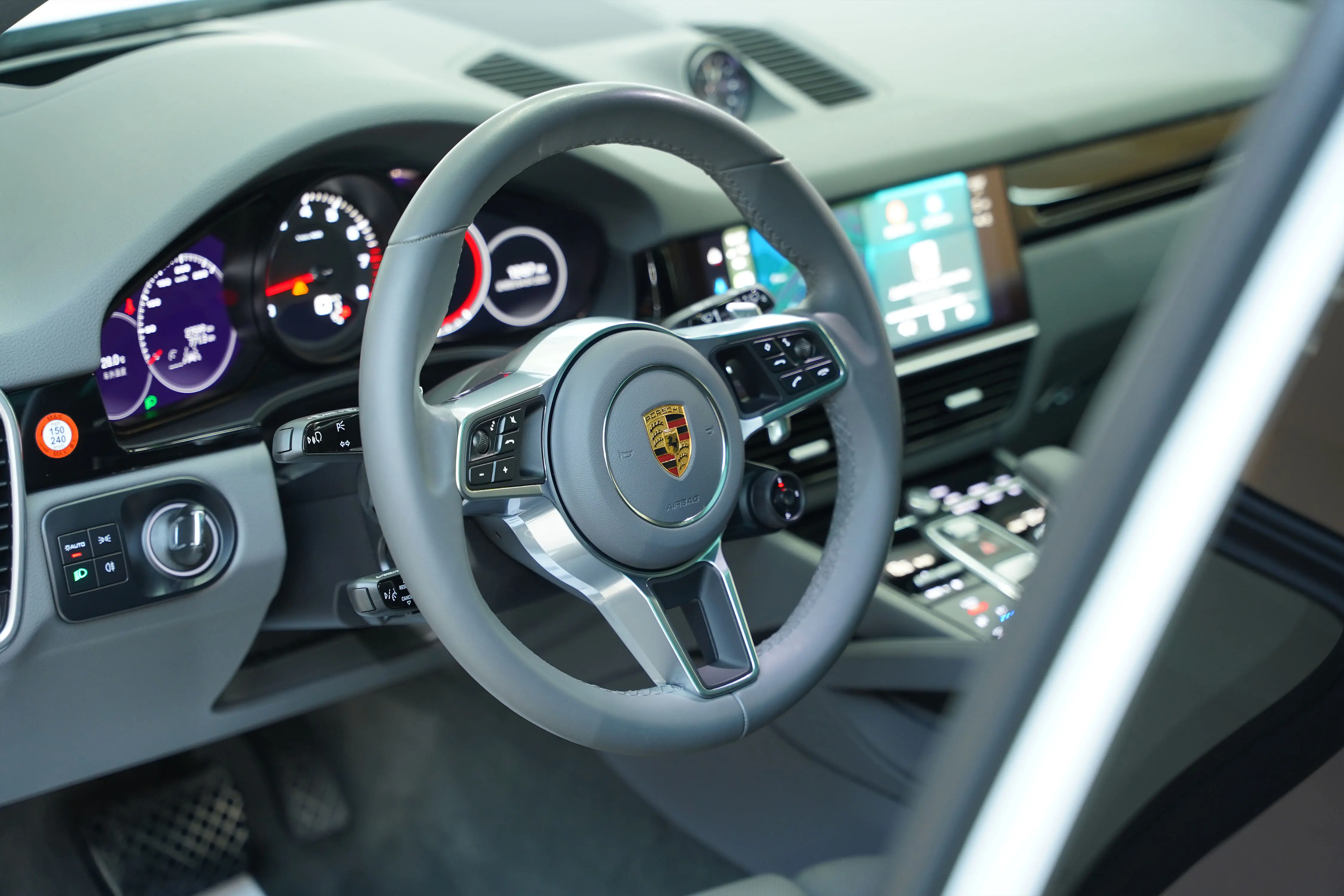 Тисненый герб Porsche на подголовнике сиденья (передние сиденья), вентиляция передних сидений с функцией массажа, функция удобного входа, система объемного звучания BOSE, функция автоматического закрытия дверей, система помощи при парковке задним ходом с