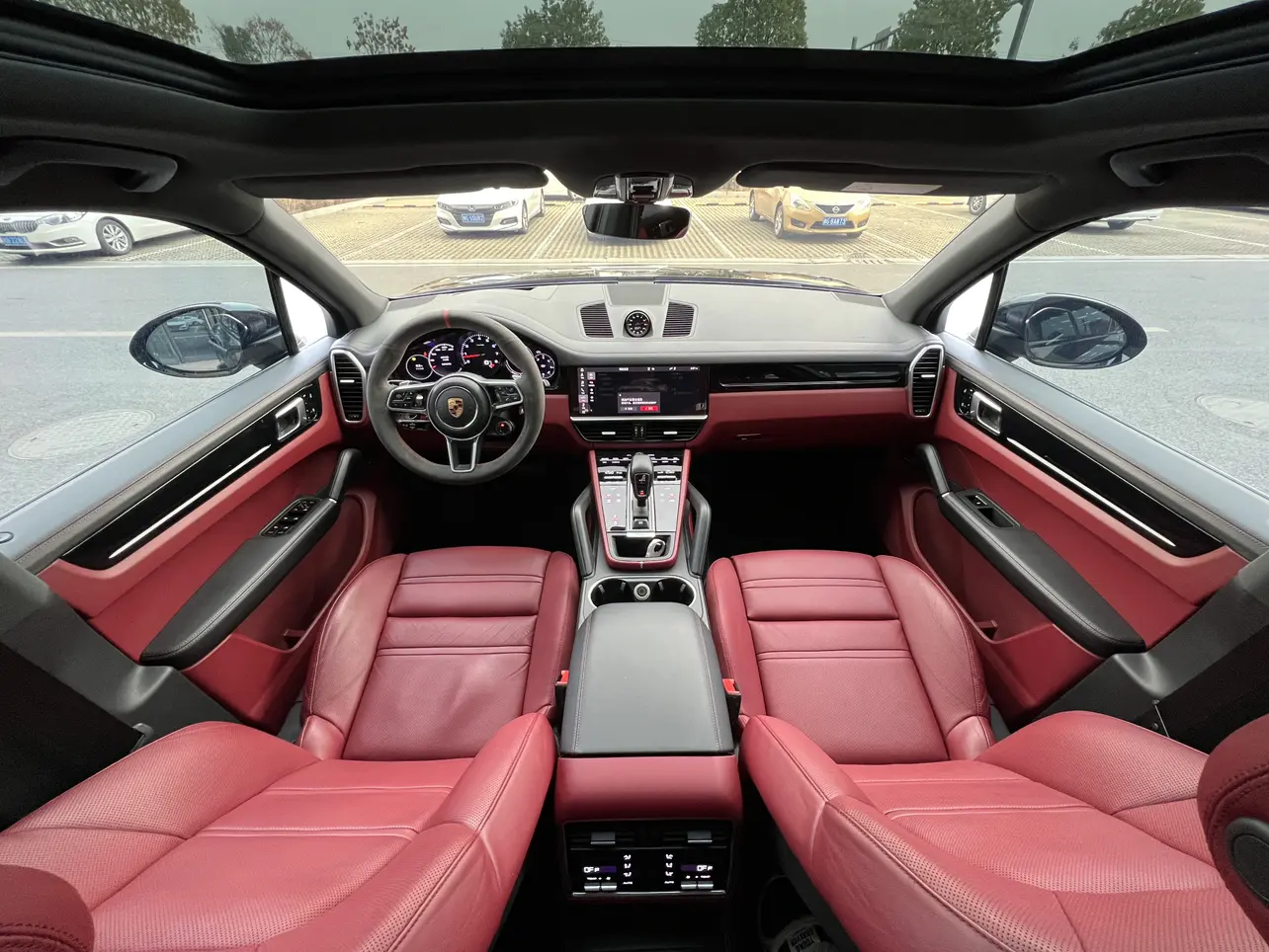 Тисненый герб Porsche на подголовнике сиденья (передние сиденья), вентиляция передних сидений с функцией массажа, функция удобного входа, система объемного звучания BOSE, функция автоматического закрытия дверей, система помощи при парковке задним ходом с
