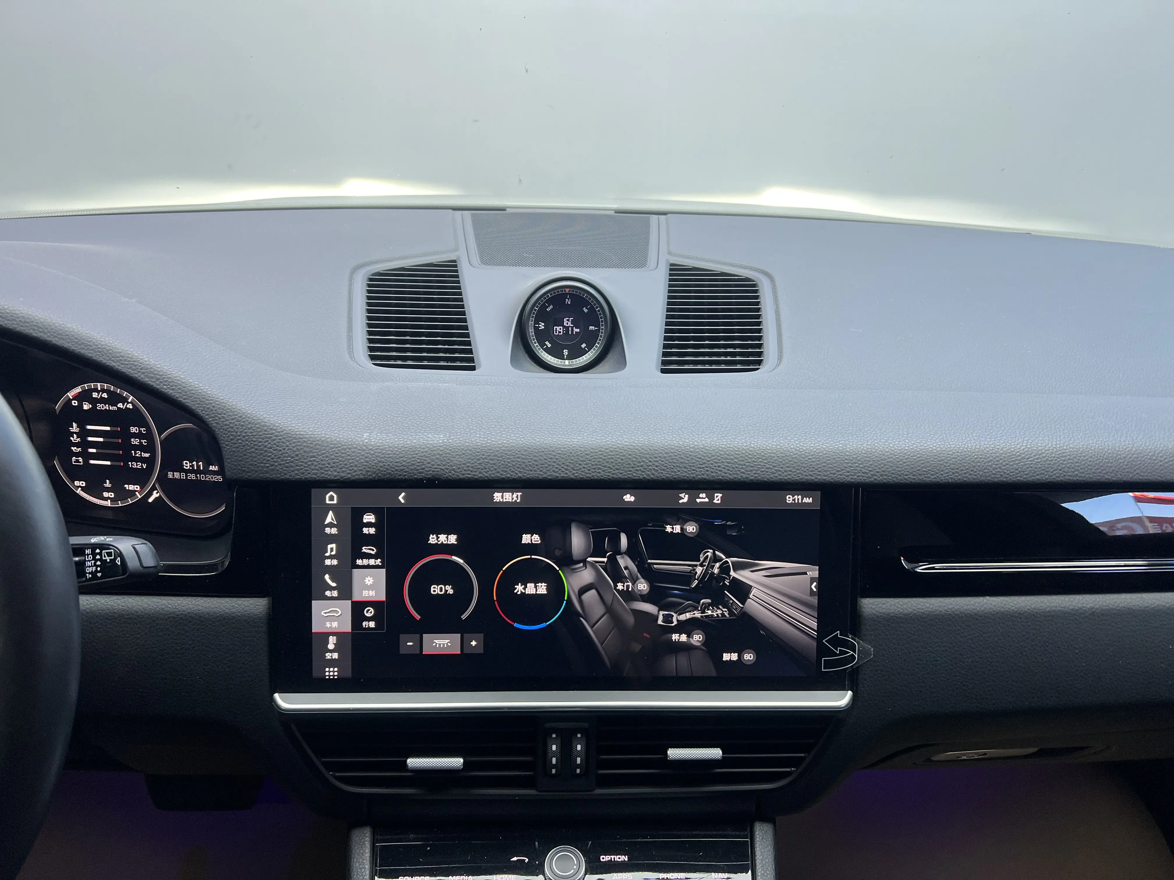 Тисненый герб Porsche на подголовнике сиденья (передние сиденья), вентиляция передних сидений с функцией массажа, функция удобного входа, система объемного звучания BOSE, функция автоматического закрытия дверей, система помощи при парковке задним ходом с