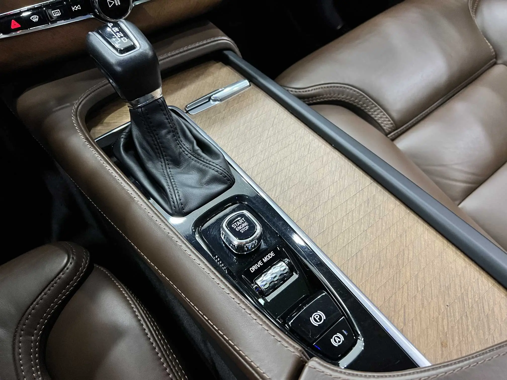 Внутренние декоративные планки из темной березы с пламенной текстурой, декоративное рулевое колесо из массива дерева.