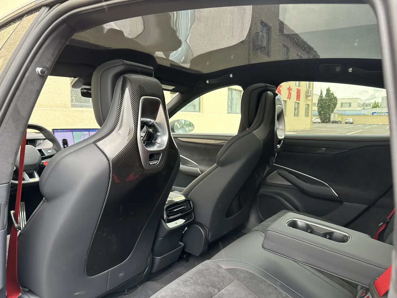 Имеются 4 накладки на дверные панели из углеродного волокна, 1 накладка на задний воздухозаборник из углеродного волокна и 2 накладки на педали из углеродного волокна.