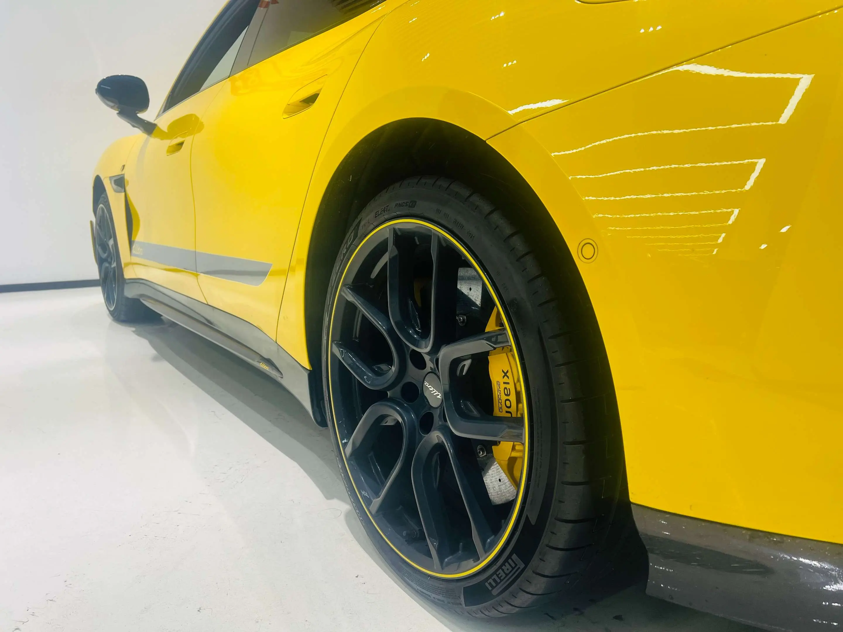 Разгон 0-100 км/ч 1,98 с, разгон 0-200 км/ч 5,86 с, тормозной путь 100-0 км/ч 30,8 м, высокопроизводительные тормозные колодки ENDLESS®, комплект амортизаторов Bilstein® EVO R для Ultra coilover, спортивные шины Pirelli® P ZERO™ 5 R21 (265/35 спереди, 325