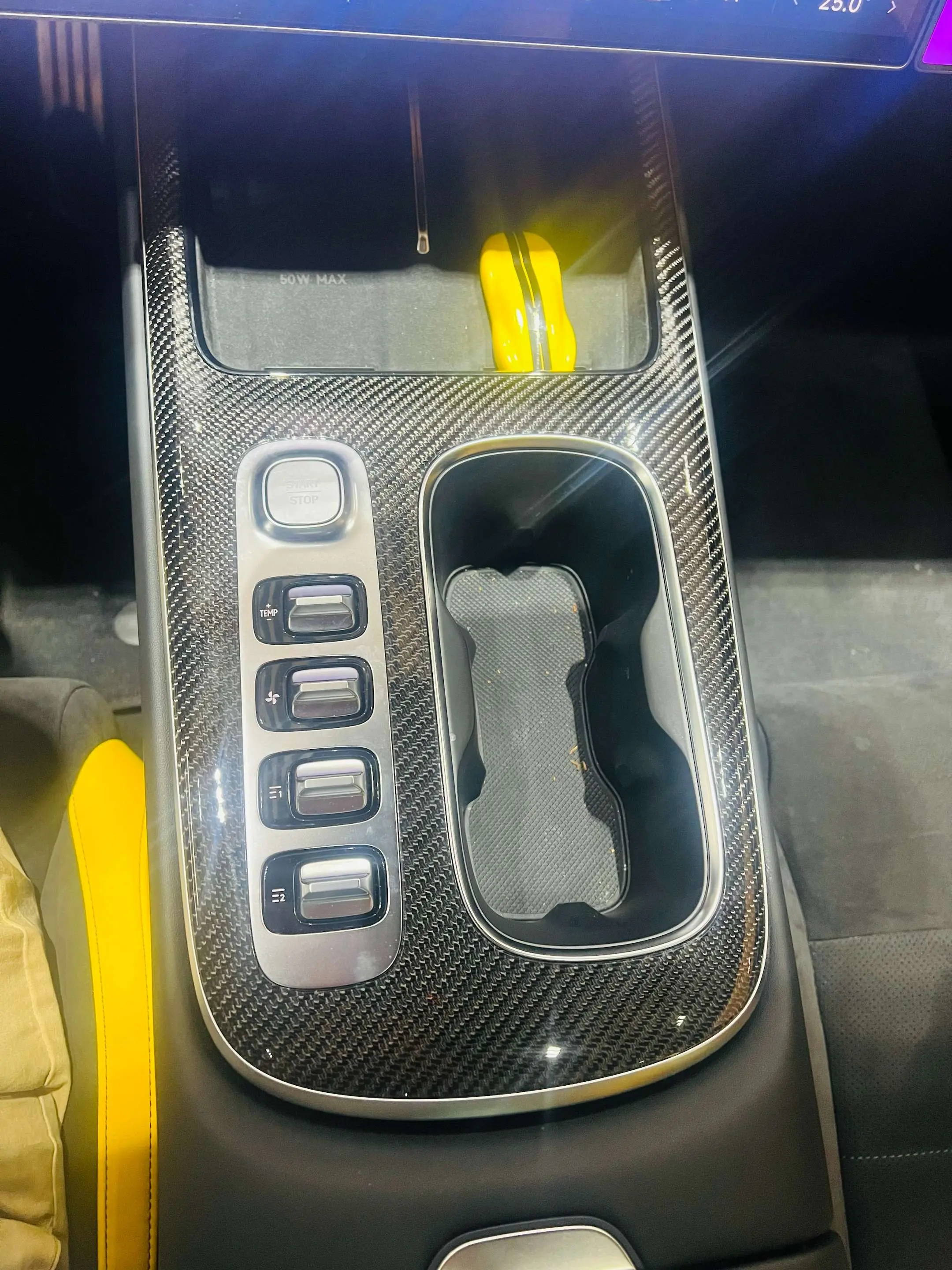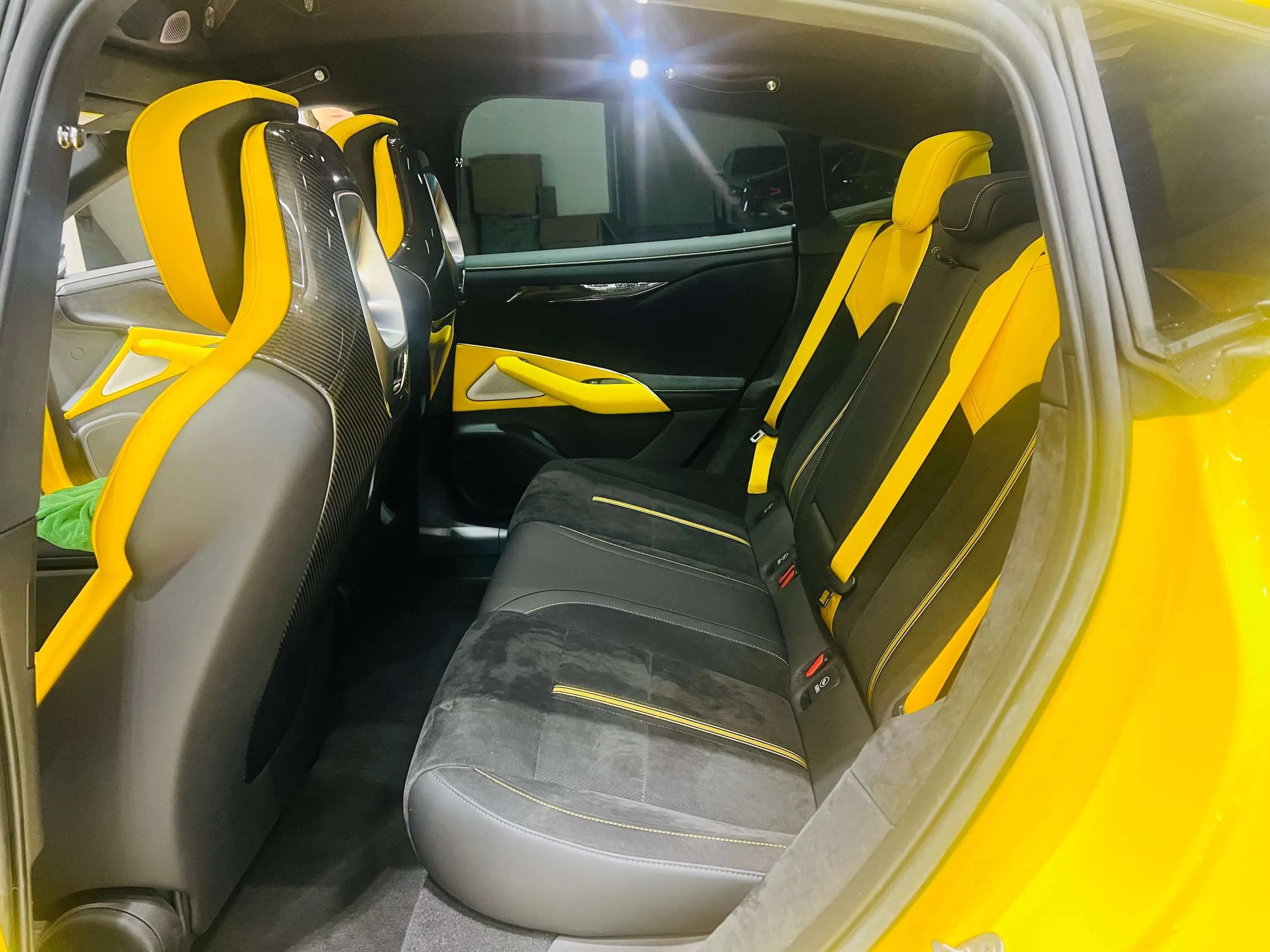 Имеются 4 накладки на дверные панели из углеродного волокна, 1 накладка на задний воздухозаборник из углеродного волокна и 2 накладки на педали из углеродного волокна.