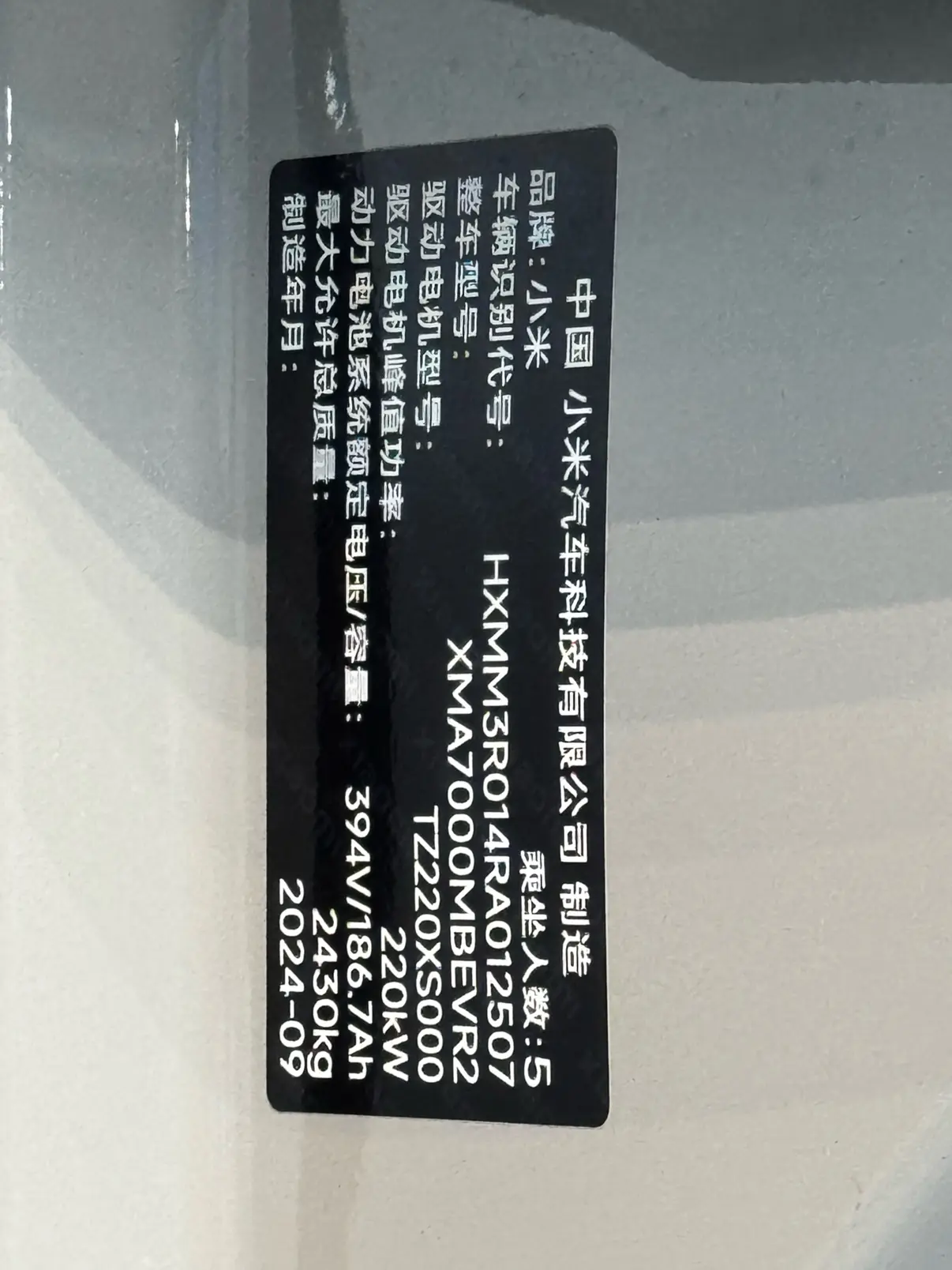Xiaomi SU7 2024 rear-wheel drive standard long-range version